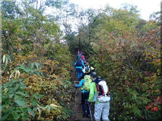 登るに従って登山道沿いの紅葉はどんどんと色合いが濃くなっていきました。