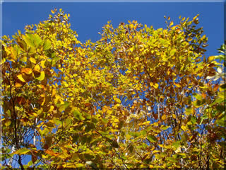 斜面に日が当たり始めると、黄葉が一気に輝き出します。