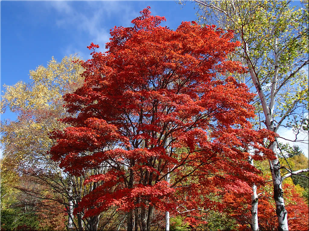 はっとするような真っ赤な紅葉です(^^)。