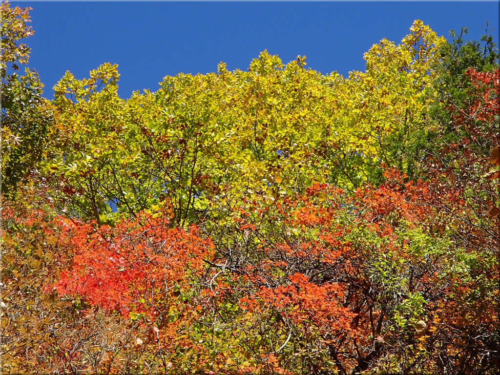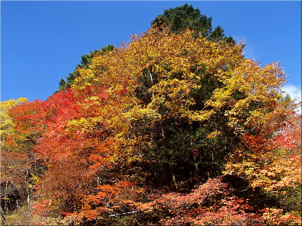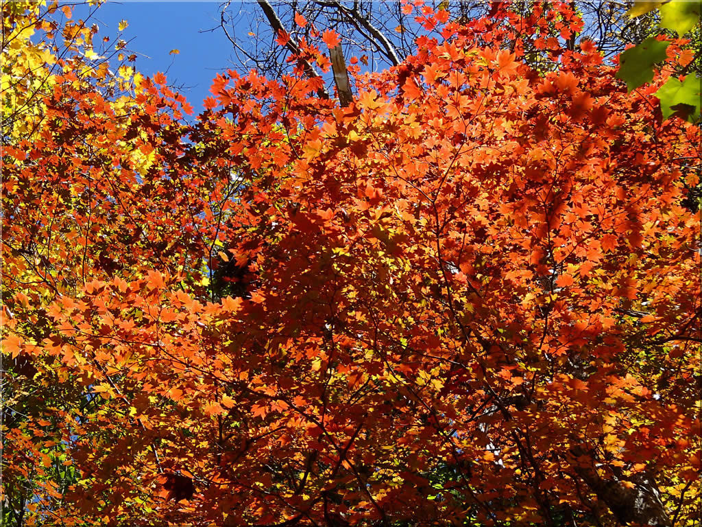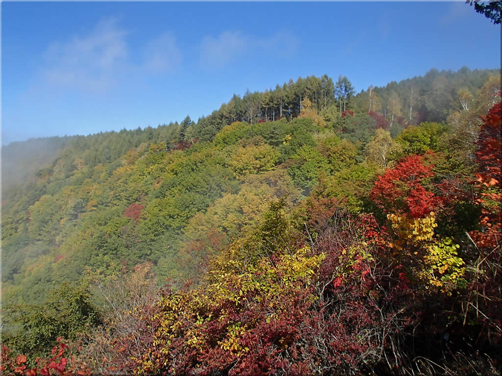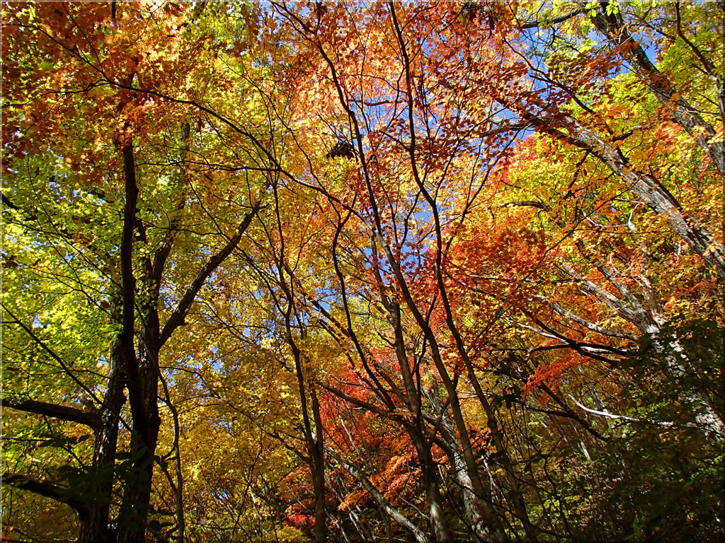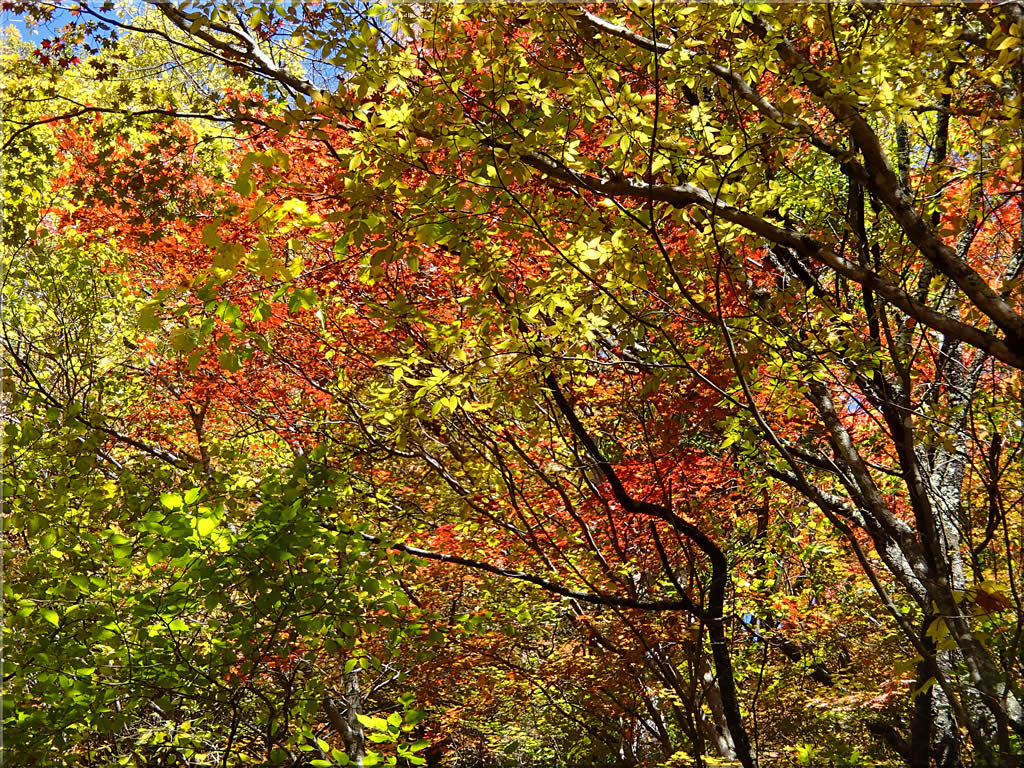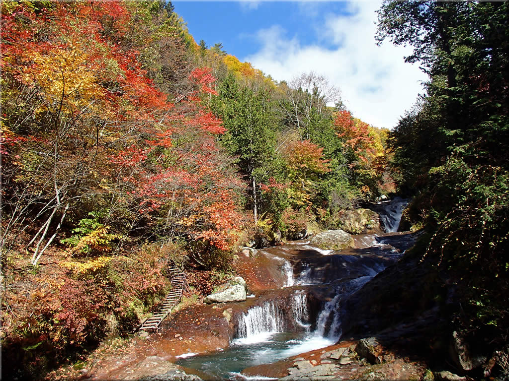 渓谷を登って行くにつれて周囲の紅葉はどんどん色が濃くなって行きました。