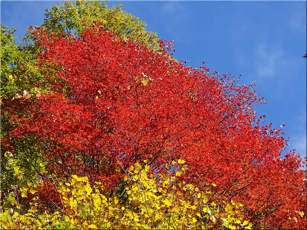 まあまあ見頃ではないですか。赤が深まる頃には黄色は落葉してしまうので、まあ赤も黄色も楽しむなら今がちょうど良い時かも。