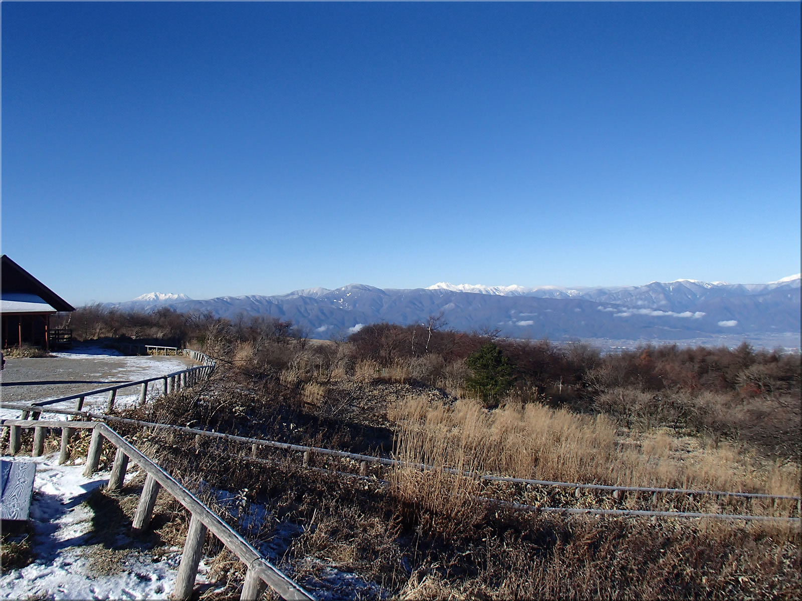 この日は仕事で松本に出かける予定があり、特に山に行く予定はしていなかったのですが、朝起きたらあまりのスーパー快晴にたまらず、仕事に行く途中に高ボッチに立ち寄って展望を楽しんでいくことにしました。