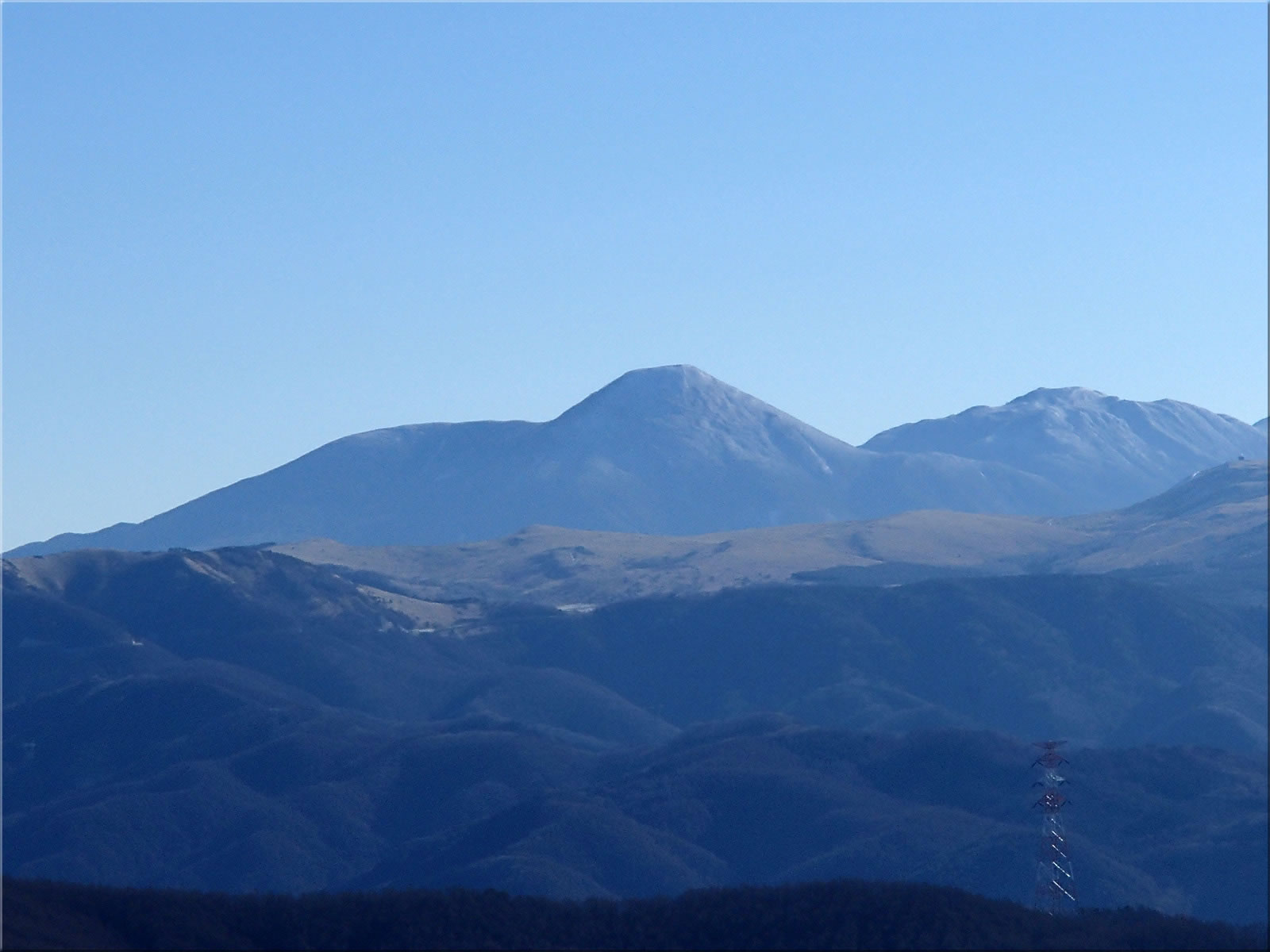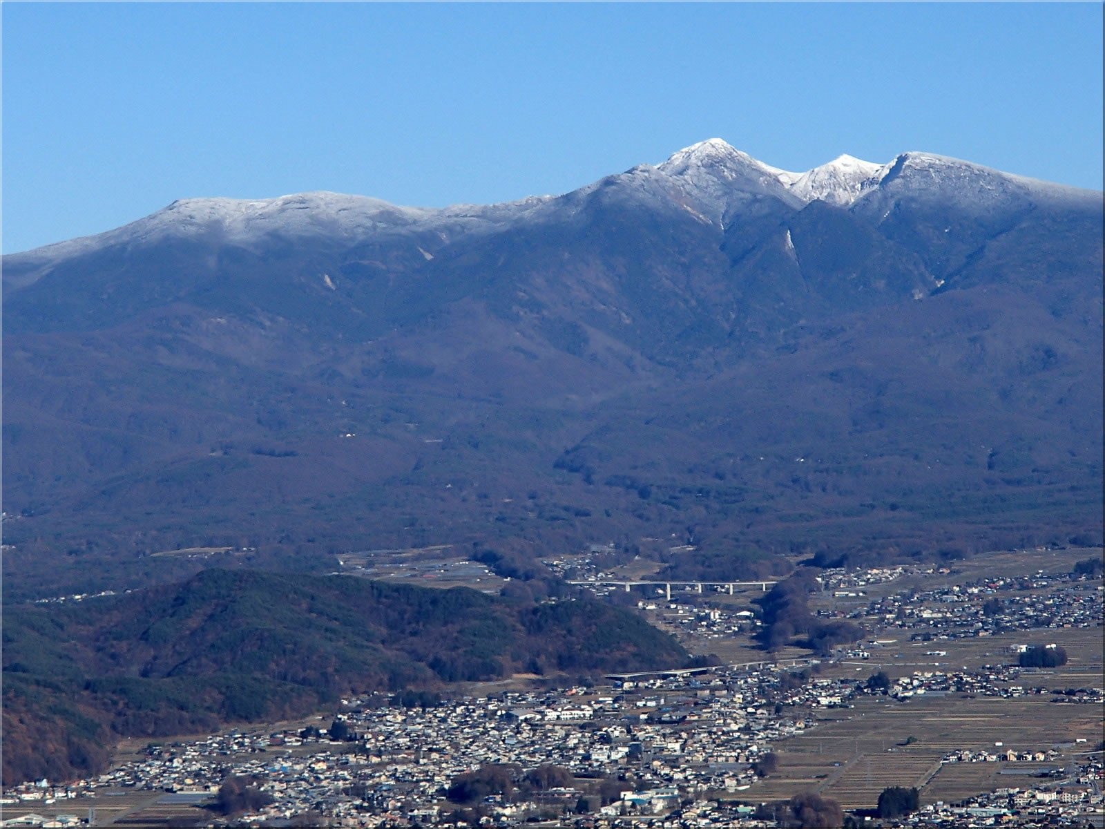蓼科山をズーム。霧ヶ峰方面は雪がほとんどありませんね。