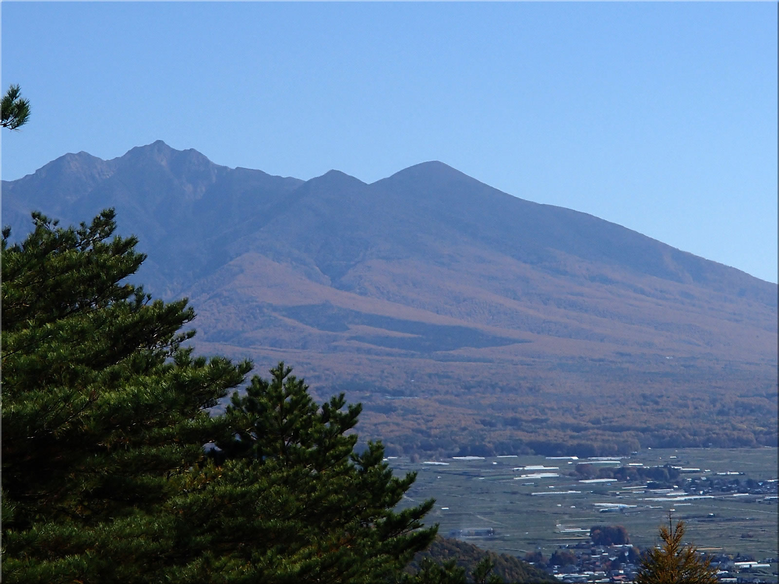 赤岳、横岳をズーム。良く見ると少し白くなっています。この秋になってから八ヶ岳が白くなっているのを見るのは私はこれが初めてです。
