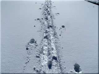 ついさっき歩いたばかりの動物の足跡です。
