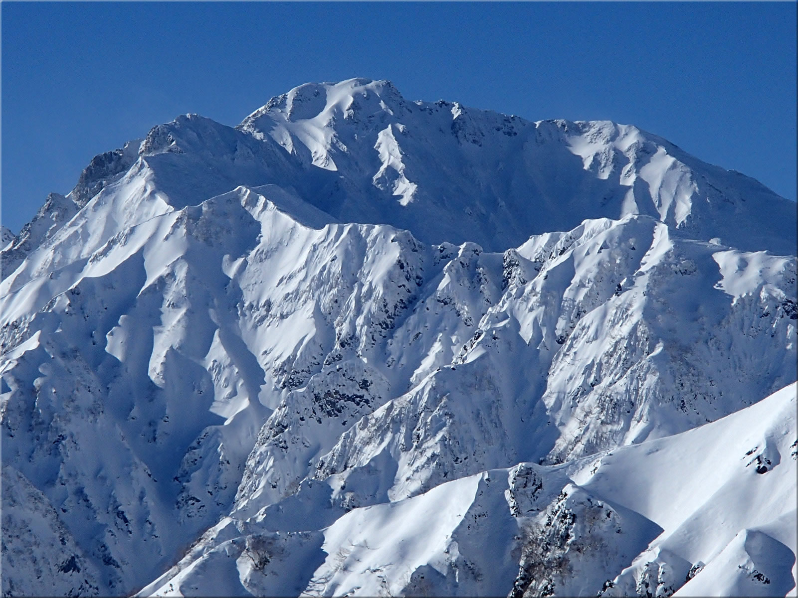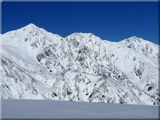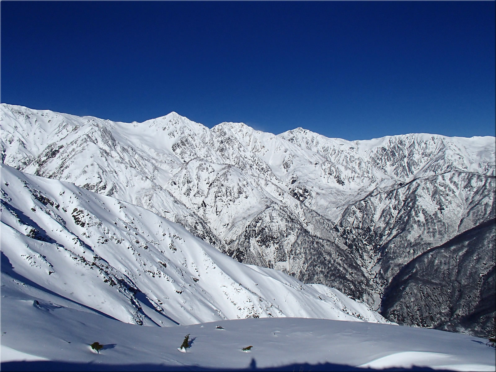 今シーズンのバックカントリーシーズンのスタートとして、昨年同様に八方尾根に出かけてきました。本当は先週末が大雪直後で最高だったのですが、残念ながら土日とも仕事で駄目。この日は高気圧に覆われて快晴が期待できましたので、行くなら今日でしょうということで出かけてみましたが、予想通りに快晴の穏やかな天気となり、周囲の真っ白な山々を眺めながらの最高の稜線散歩を楽しむことが出来ました。雪ですが、先週末以降ほとんど降雪が無いと言うことで雪の状態が心配でしたが、吹きだまりでまあまあのパウダーを楽しむことが出来ました。