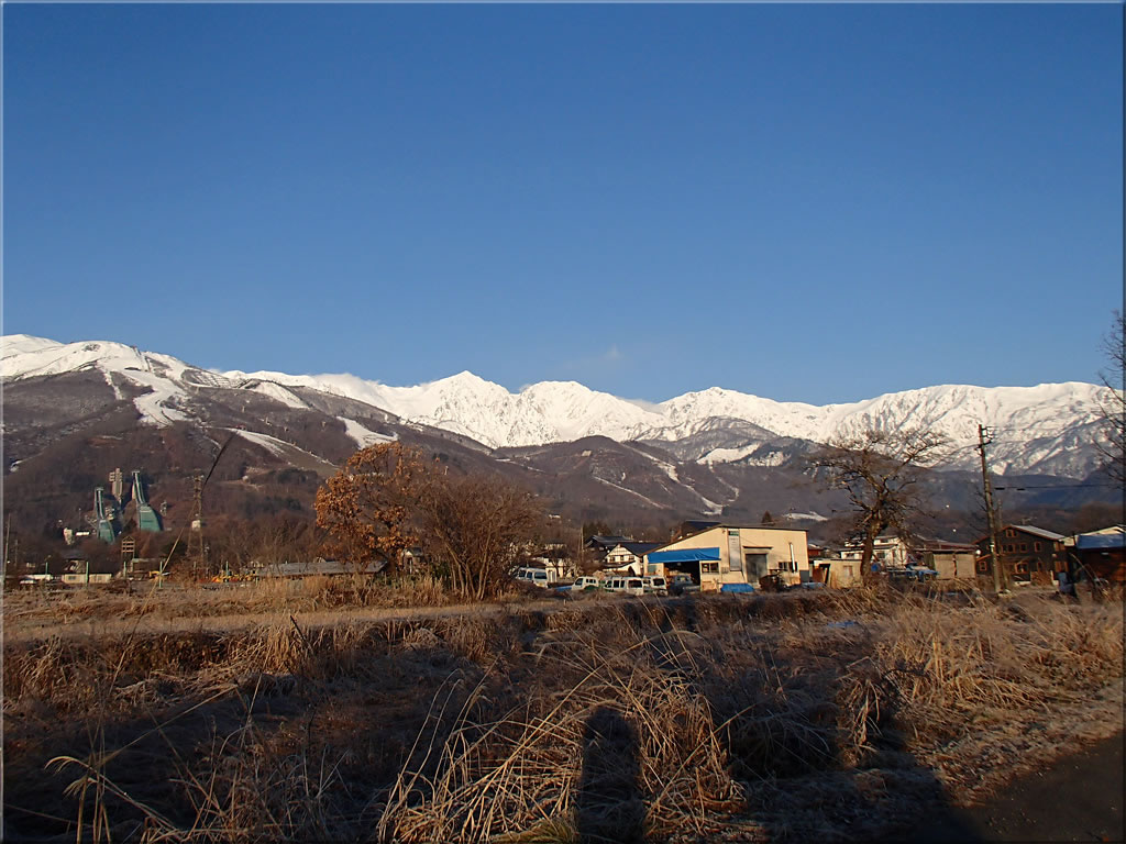 次の写真は八方尾根スキー場の近くから撮影したもの。ご覧の通り里には全く雪がありません。またゲレンデも中腹までは雪がほとんどありません。そろそろどか雪が欲しいところです。