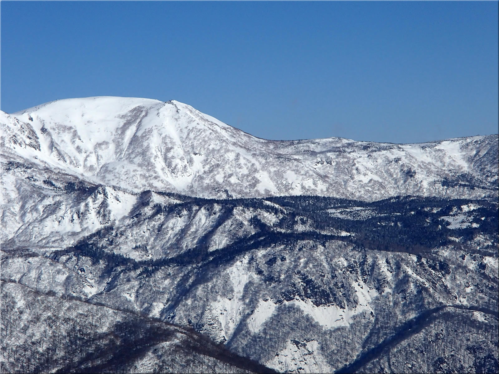 白馬乗鞍岳をズーム。こちらの斜面もそろそろ滑れそうな感じです。