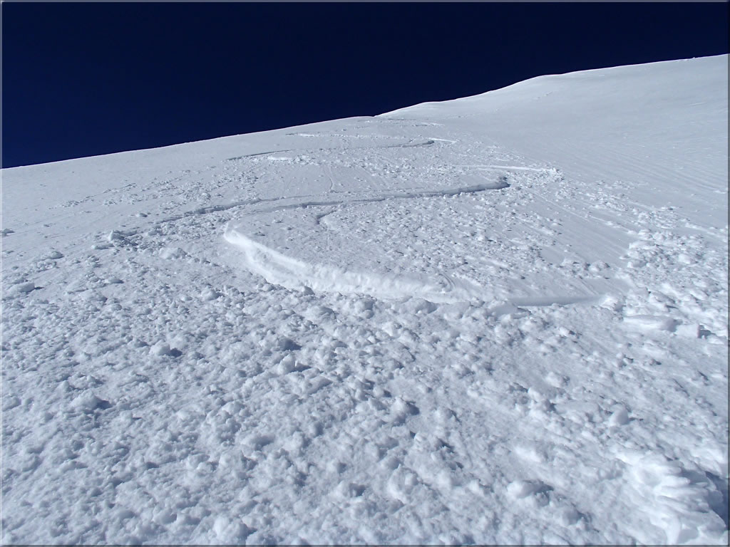 斜面はかちかちかと思ったら、意外にも雪はさらさらでした。場所にもよりますが10cmから20cmほどはパウダー状態でした。