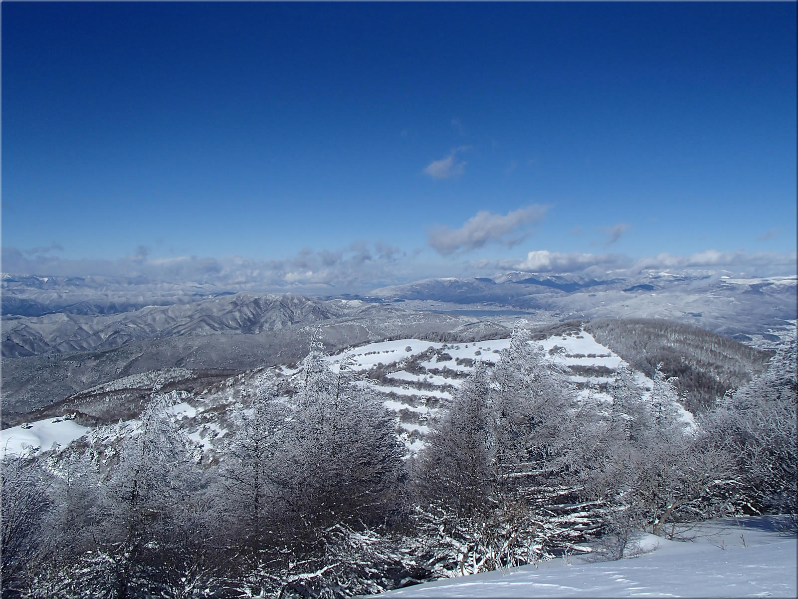 山頂直下の急斜面も藪がすっかり埋まりました。後でこの斜面を滑り降りるのが楽しみです。