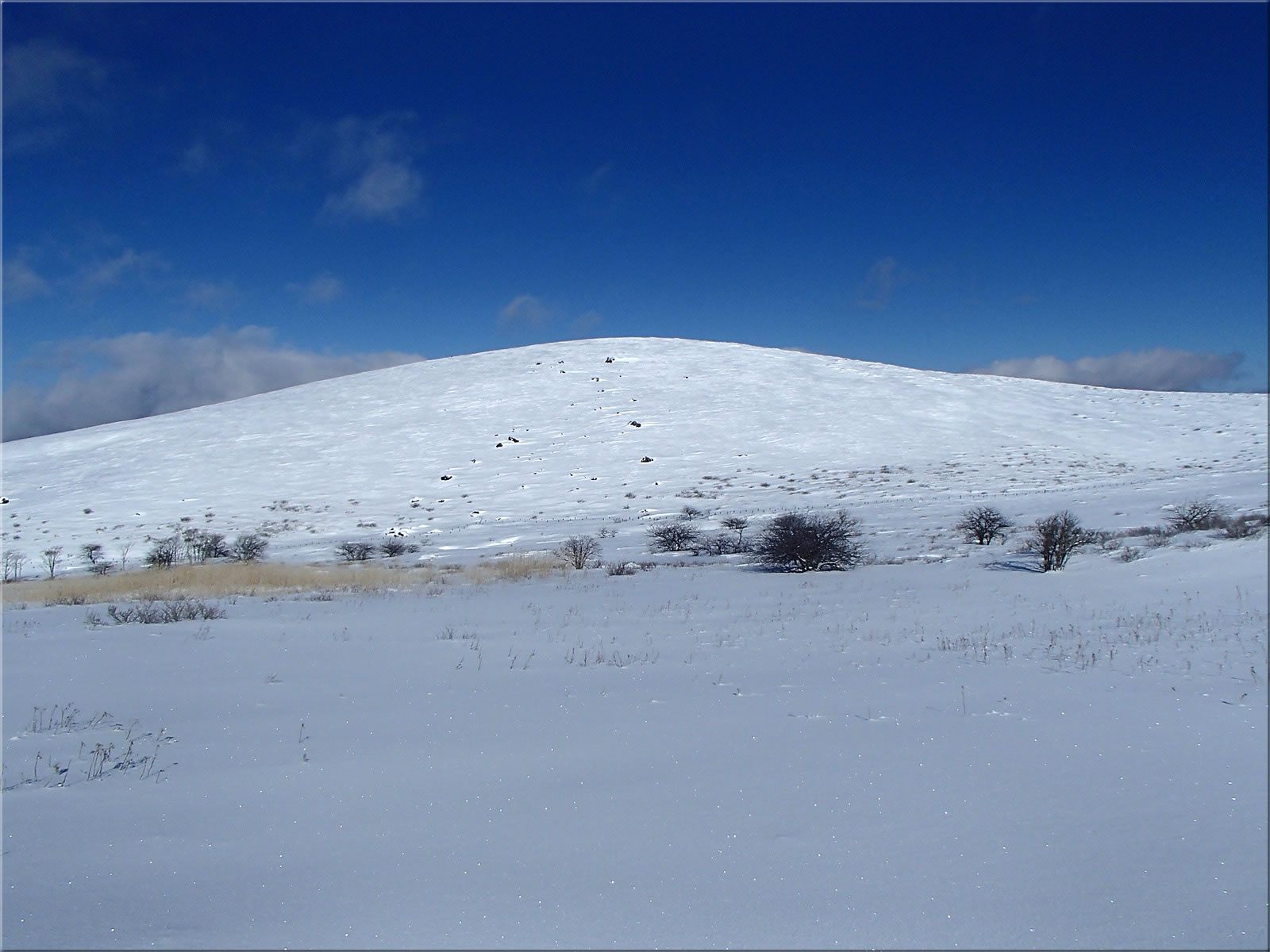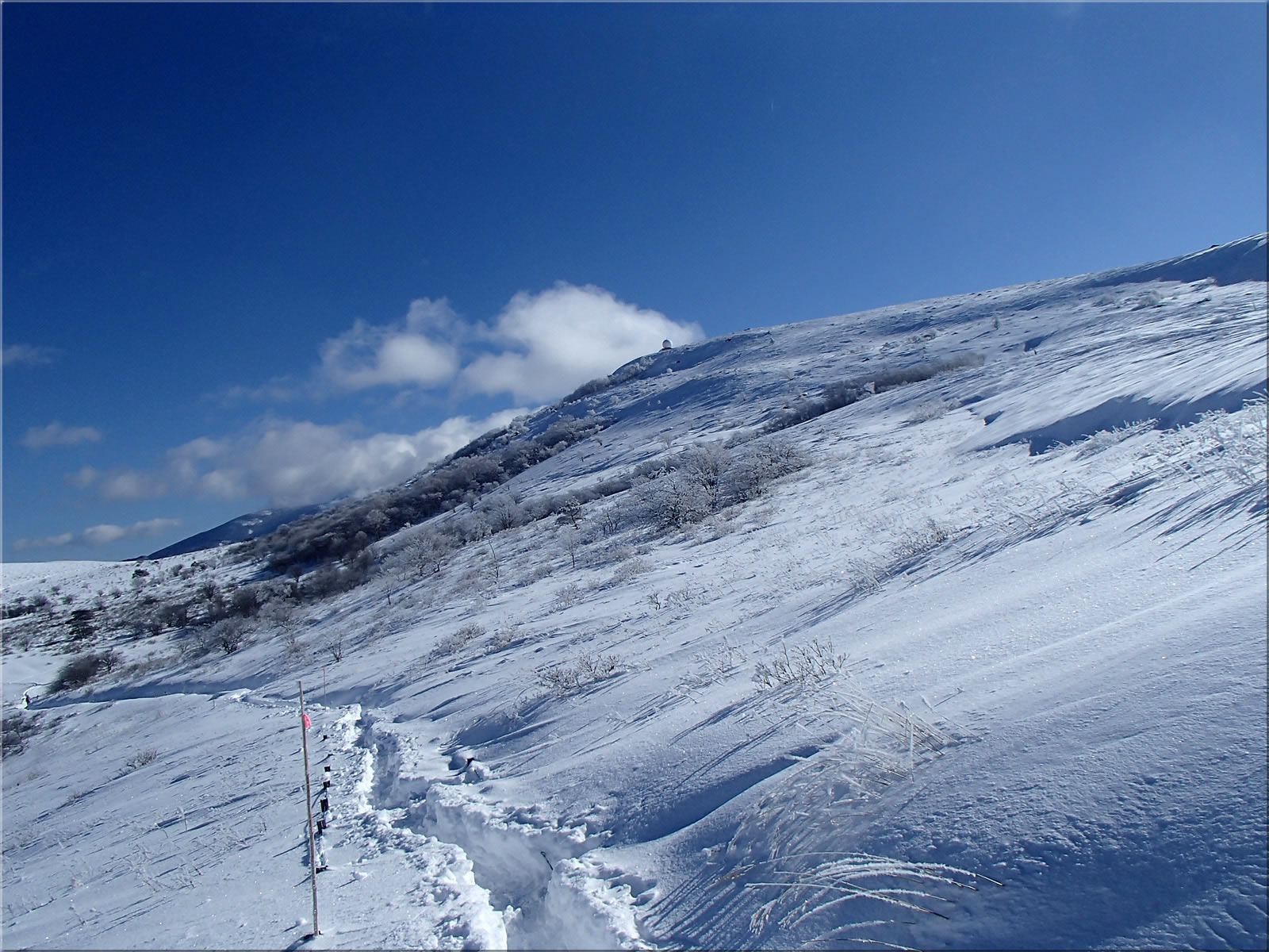 間もなく登山道と合流します。山頂はもうすぐです。ところで登山道上にトレースがありませんので、どうやら先行した登山者より私の方が早く山頂にたどり着いたようです。