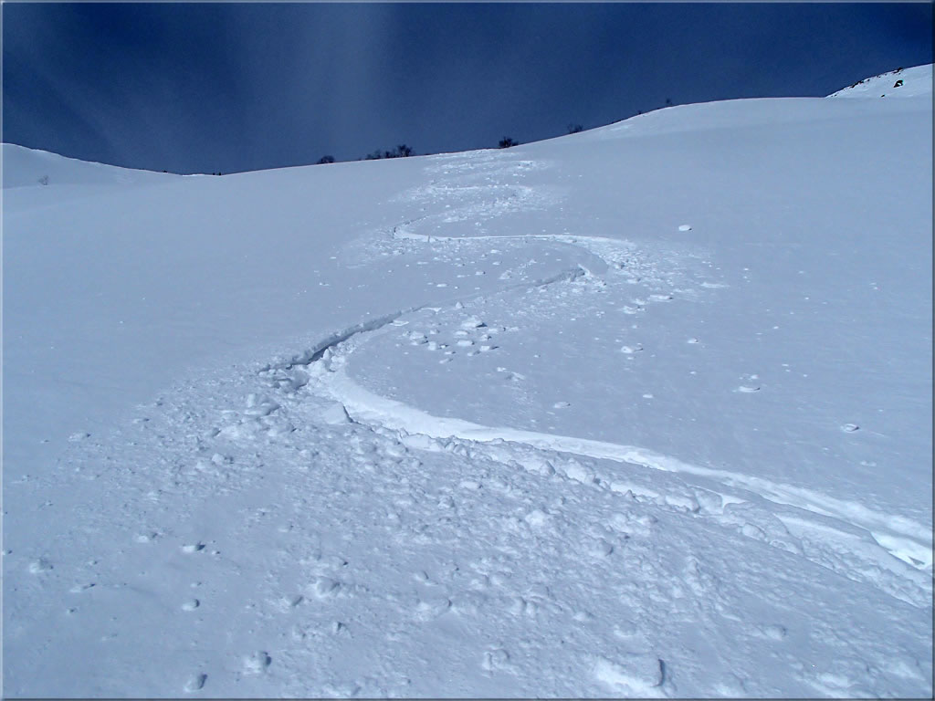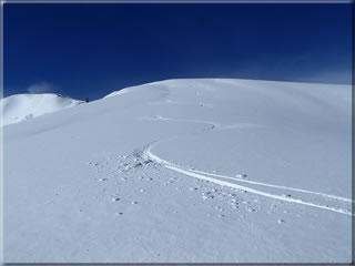 振り返ると、丸山方面から滑り降りたシュプールが見えましたのでぱちり。
