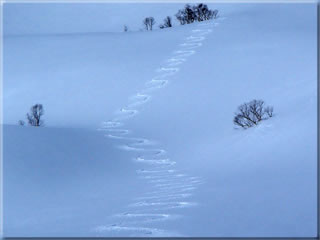 先ほどの斜面をズーム。一体何人が滑り降りたのでしょう!。