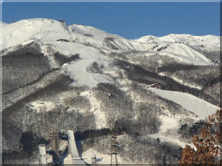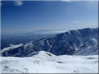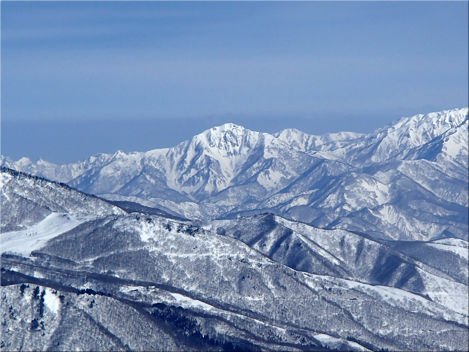 妙高山、三田原山をズーム。今シーズンは久しぶりに滑りに行きたいです。