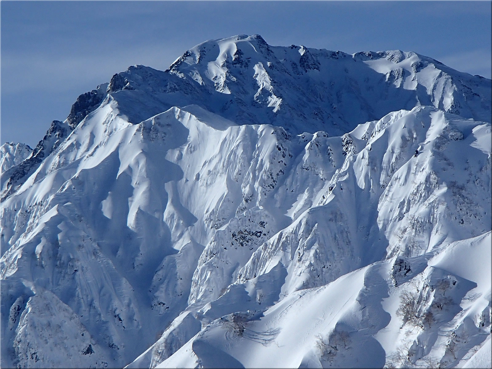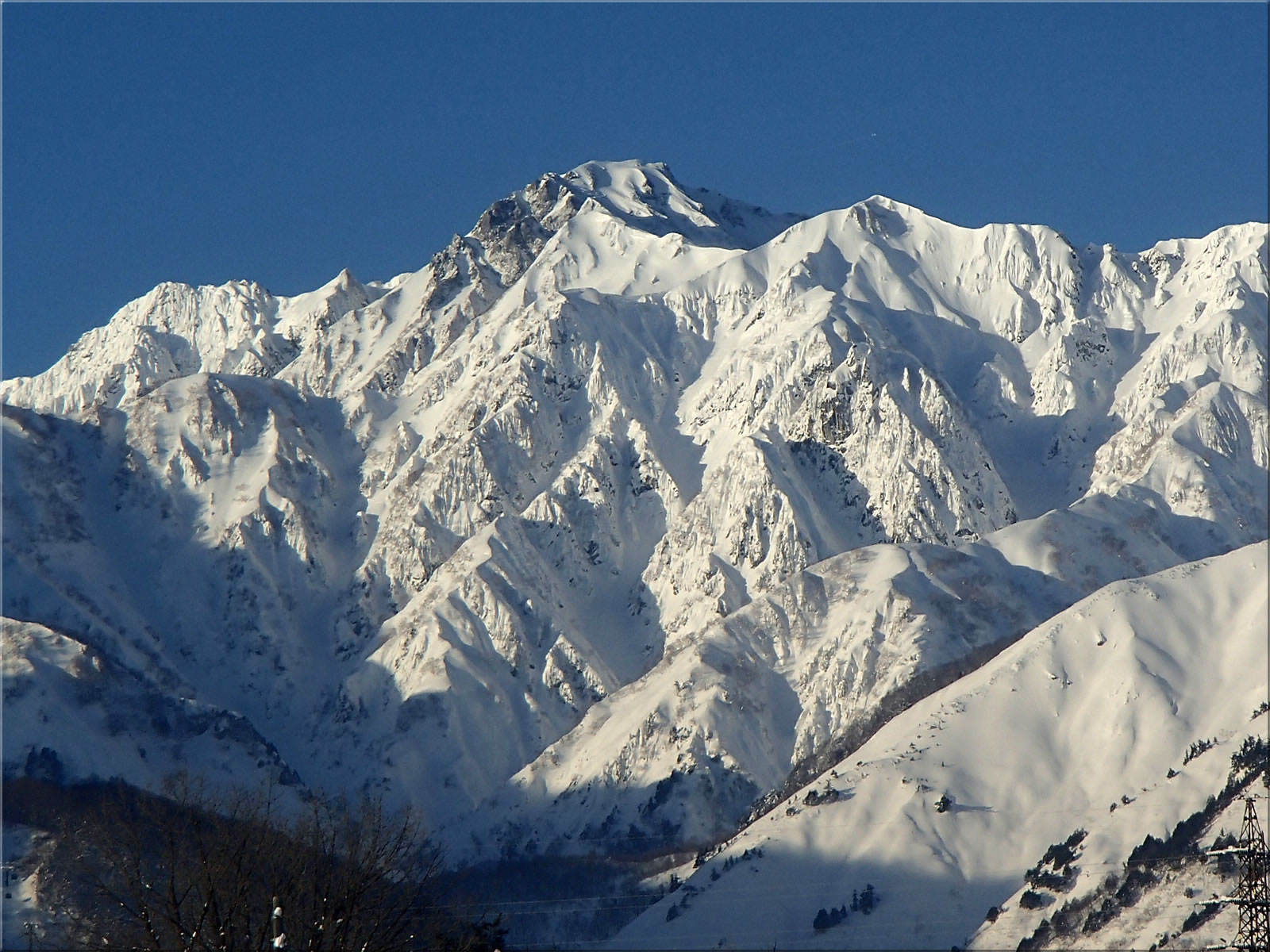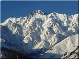 火打山をズーム。火打は冬の時期はいつ見ても真っ白です。