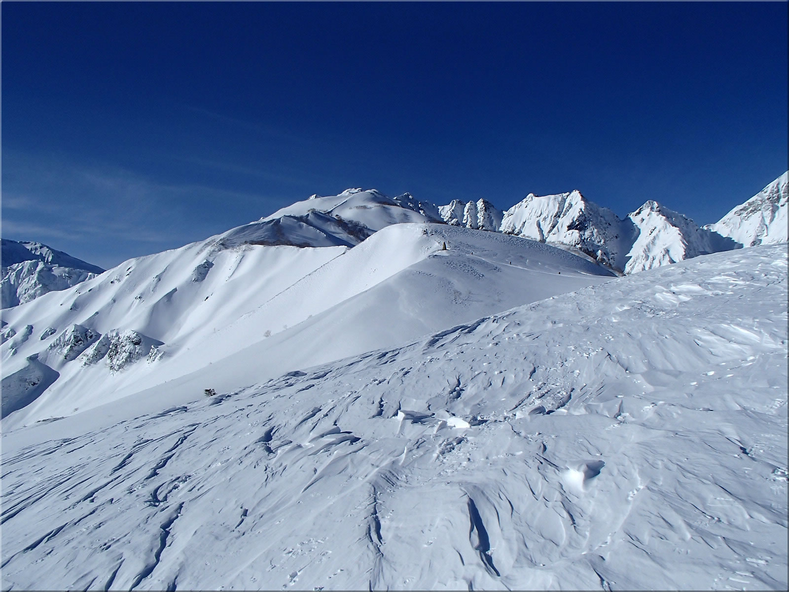 最上部のリーゼングラートの様子。どうやらここはパウダーだったようですが、すでに沢山のシュプールでぎだぎだでした(^^;。