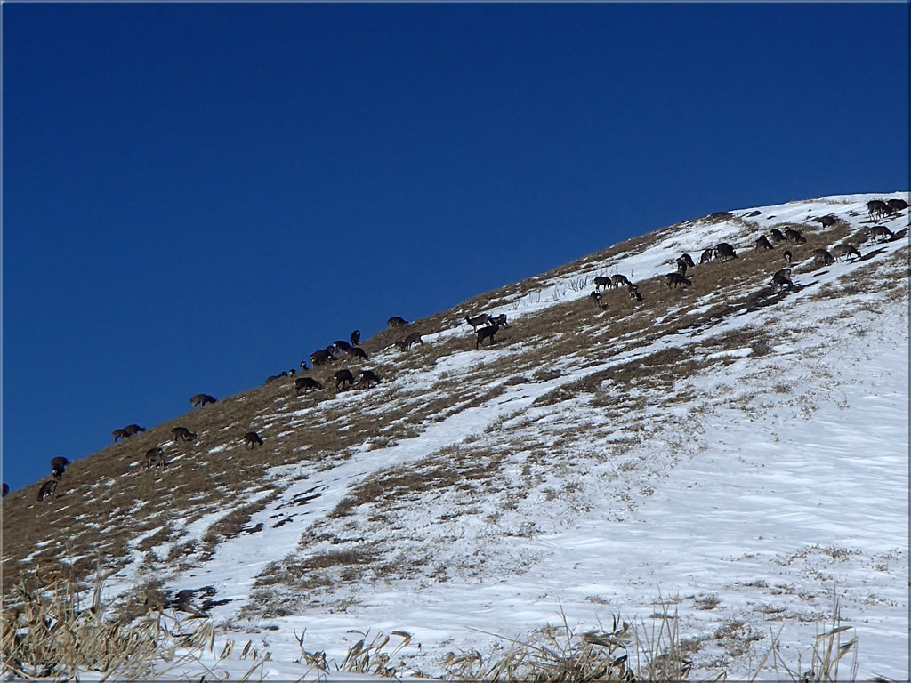 三峰山稜線をズーム。沢山の鹿がいるのが見えます。