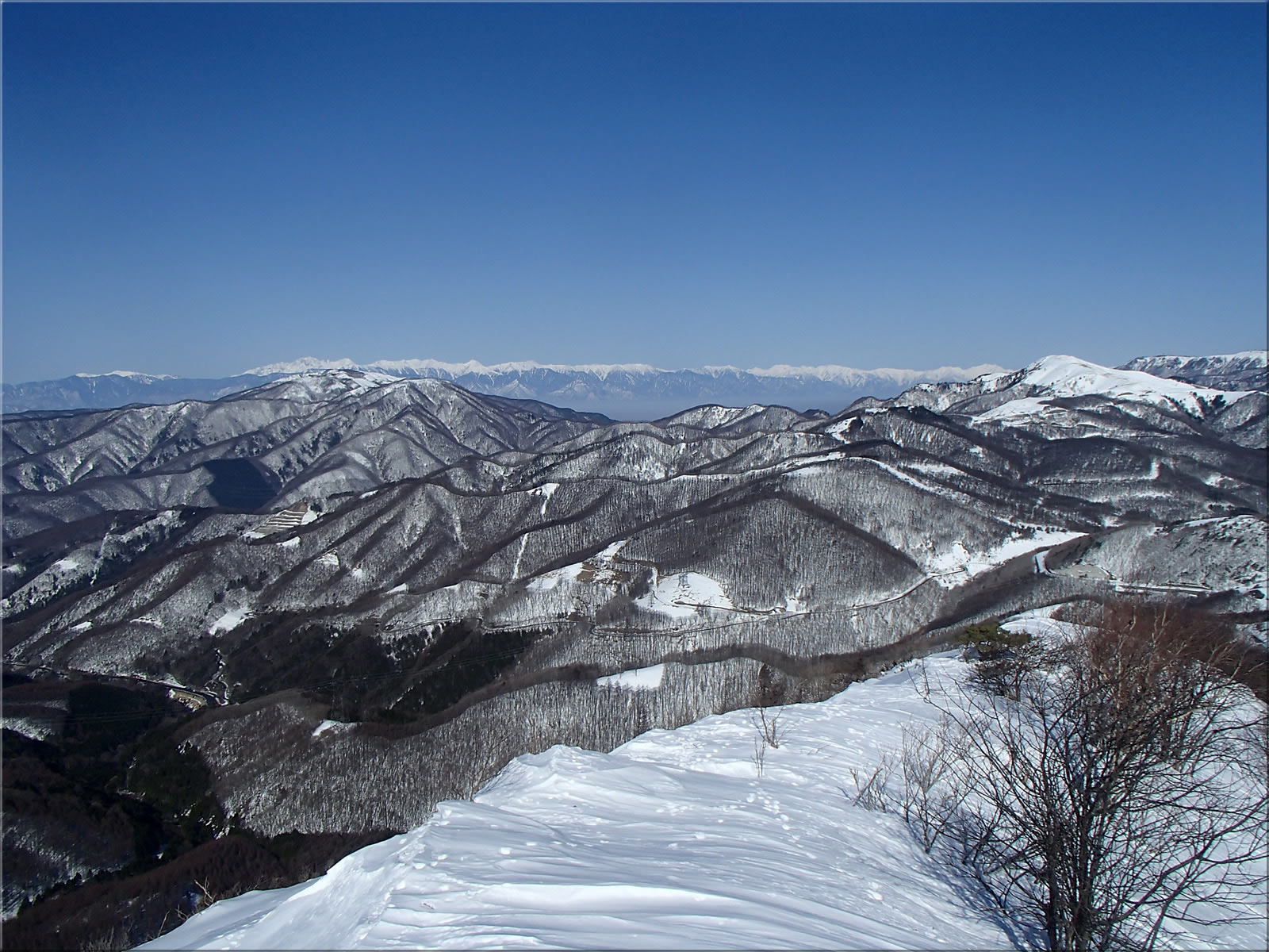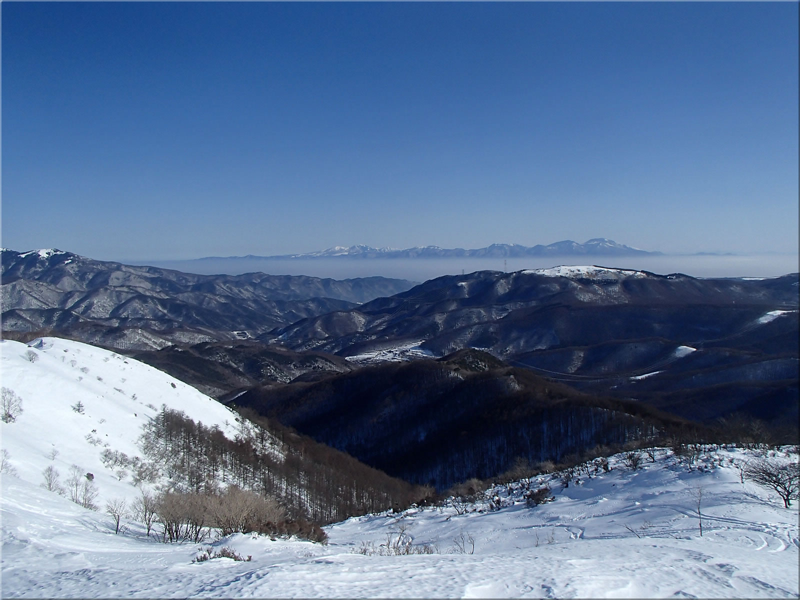 赤岳、横岳、硫黄岳をズーム。手前は車山。車山北面も私のお気に入りの滑走フィールドで、今シーズン何回も訪れています。