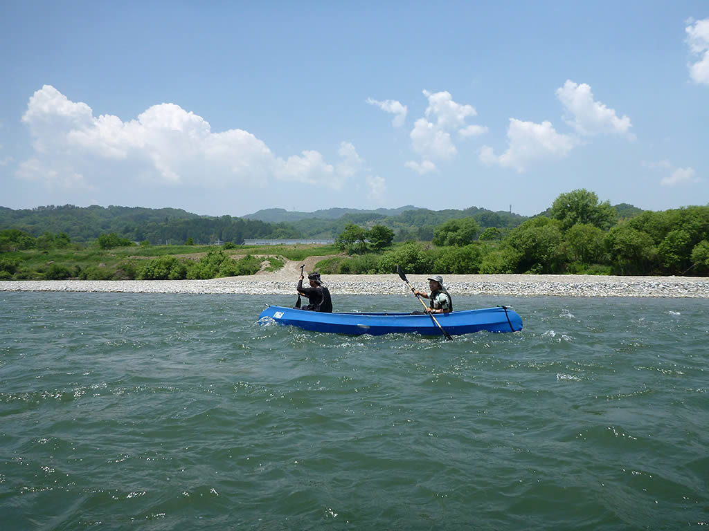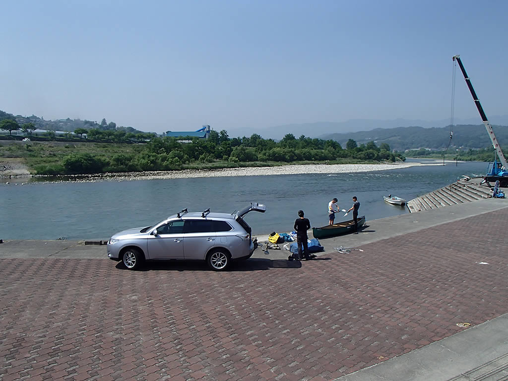 今回下ったのは、前回と同じく飯田の時又港から唐笠港までです。やはり川下り用の港があれば、川への出入りや車の置き場所に困らないからです。またこの区間は大きな瀬もなく比較的穏やかな流れでのんびり出来るため、まさにカナディアン向けのエリアです。