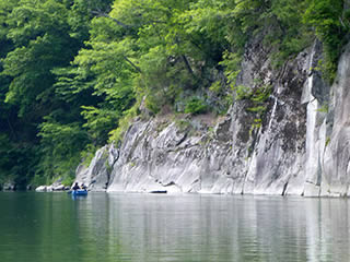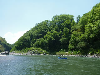 天竜峡は狭い岩場が続きますが、瀬はほとんど無く、川は穏やかに流れていきます。