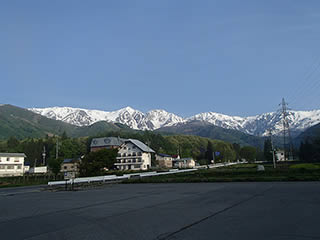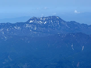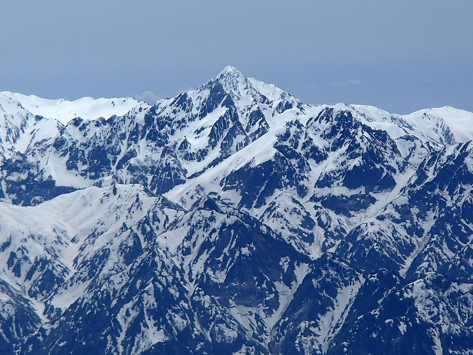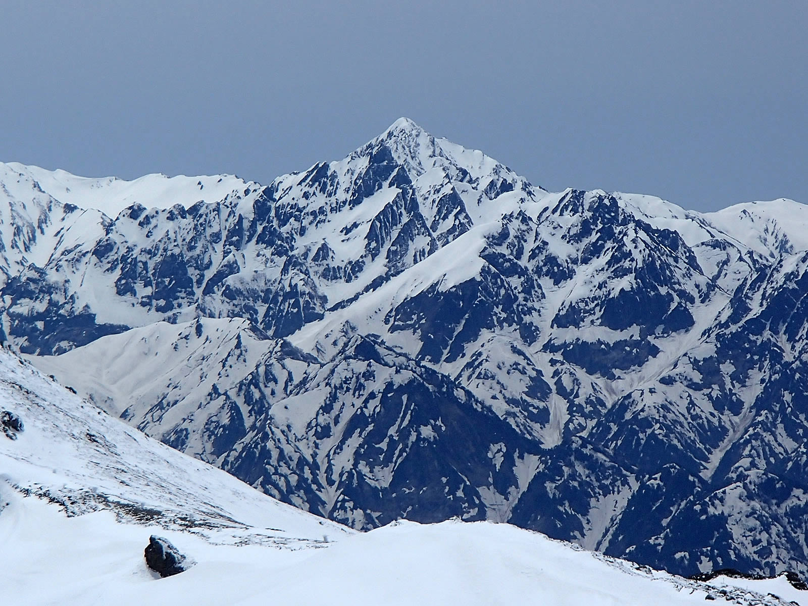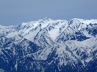 正面に見える白い山をズーム。(おそらく杓子岳の尾根の一つか)