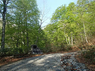 林道を進むと、間もなく道路脇に残雪が出てくるようになります。