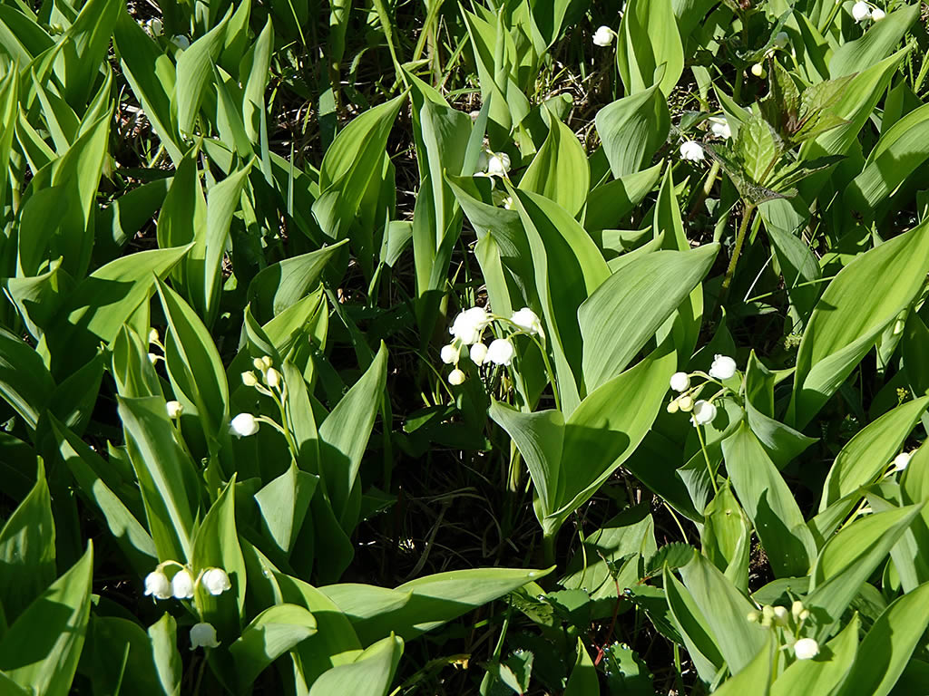 斜面のスズランですが、下の方は今がちょうど満開、上の方は4分咲きという感じでしょうか。