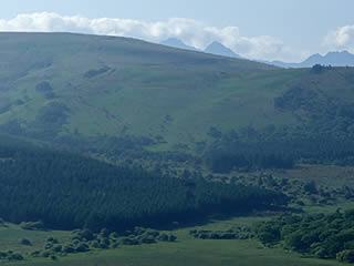車山をズーム。車山湿原のレンゲツツジの群生地はまだあまり色づいていませんね。