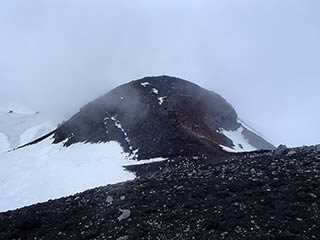 次はお釜の様子。まだ雪は多いです。剣ヶ峰は残念ながら私が山頂にいたときには見えませんでした。