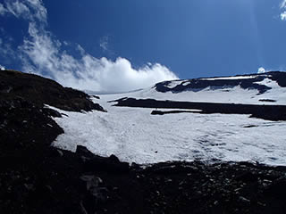 次の3枚は吉田大沢の雪渓の下部の様子。