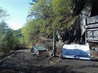 この先の夏道登山道はしばらく雪がありませんでした。ま、岩がごつごつでテレマークのプラブーツでは登りにくいですが(^^;。