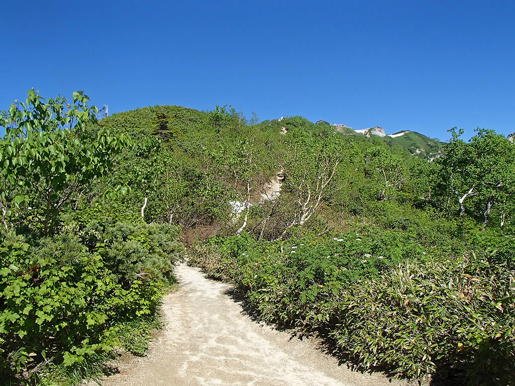 登山道脇にところどころ残雪が出てくるようになります。