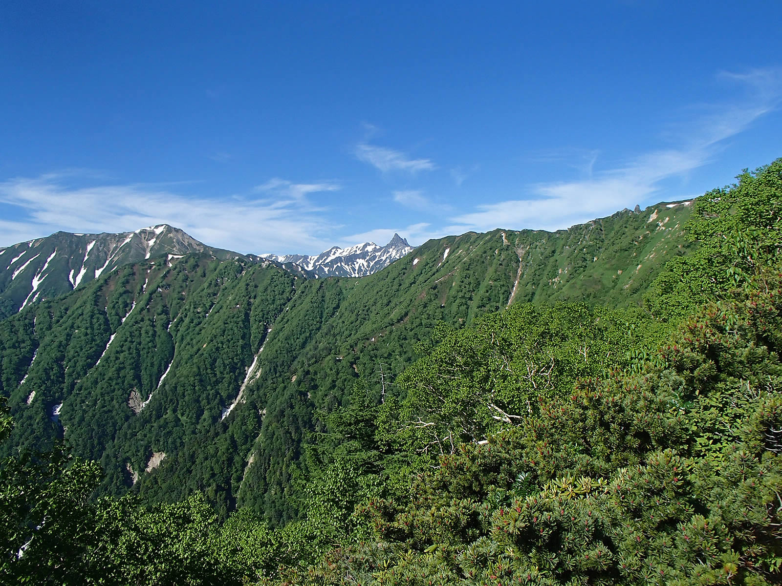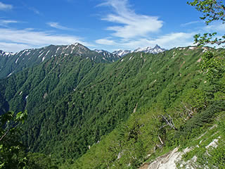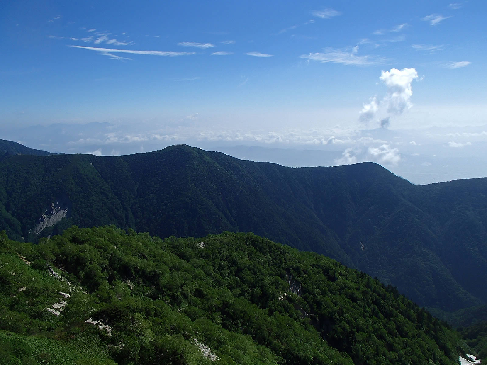 登山道は濃い樹林の中をジグザグに登っていく急登で展望はほとんど無いのですが、ここで初めて稜線側を眺めることが出来ました。