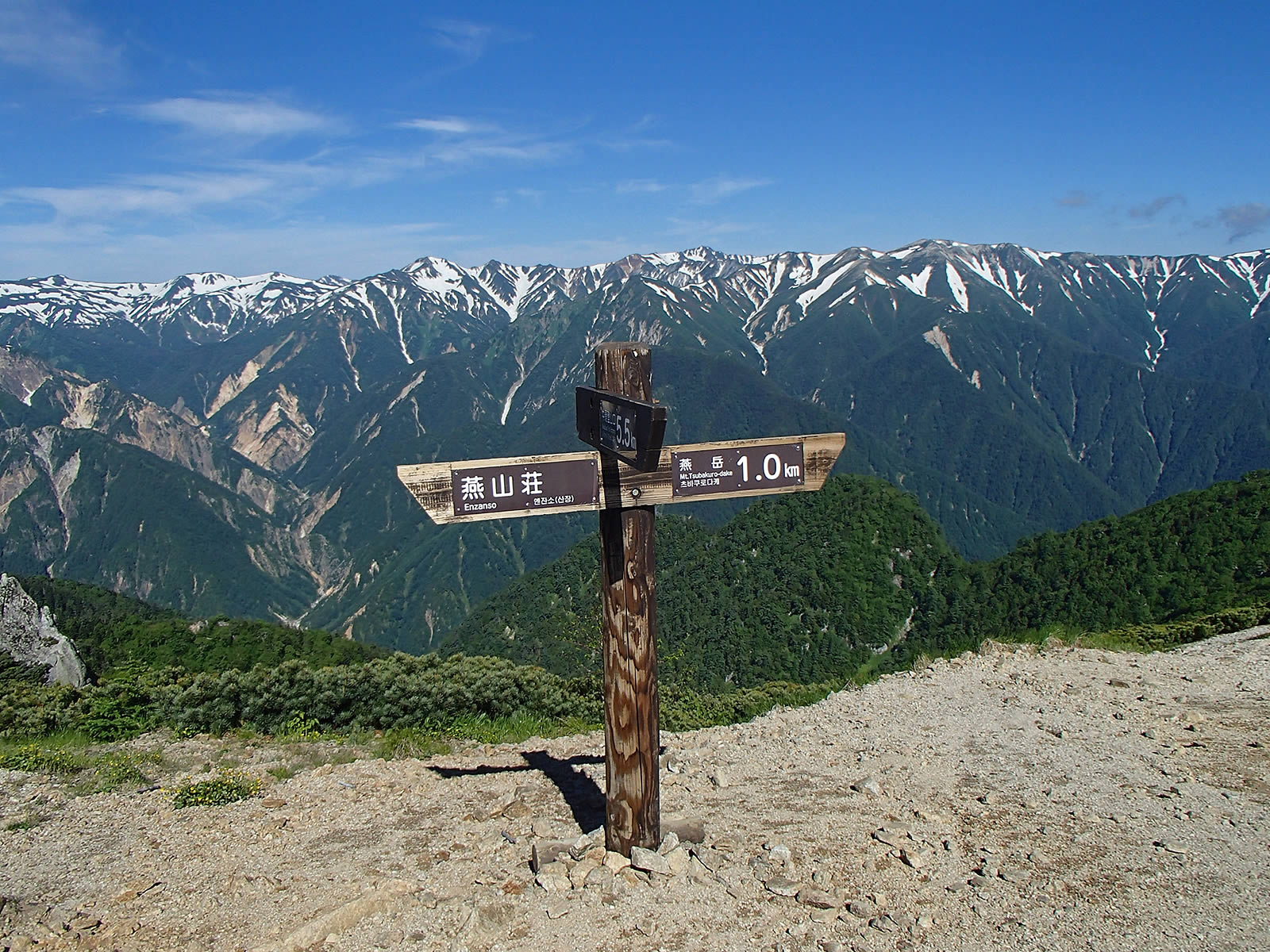 10時27分、燕山荘を通過。この頃はちょうど登ってくる登山者がピークの頃と言うことで、すれ違いが本当に頻繁でした。今夜の燕山荘は大混雑だったのでは無いでしょうか。