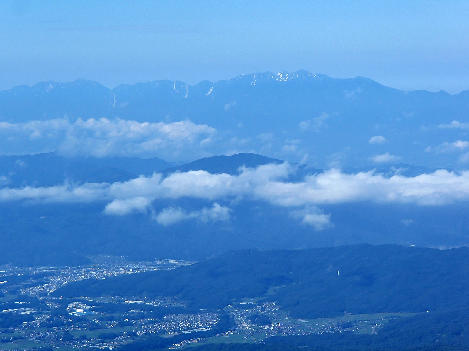 中央アルプスをズーム。その手前に守屋山、そして私の裏山の永明寺山。