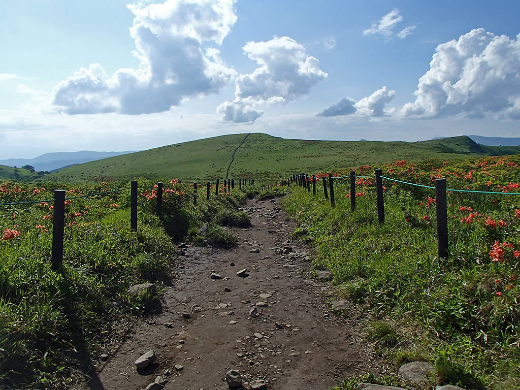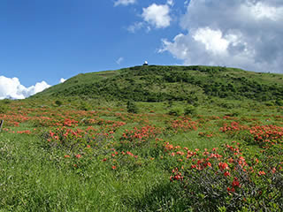 車山乗越から先は、両側の斜面が一気にレンゲツツジのオレンジで染められます。