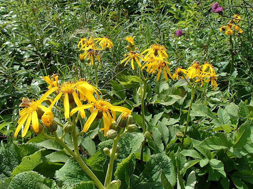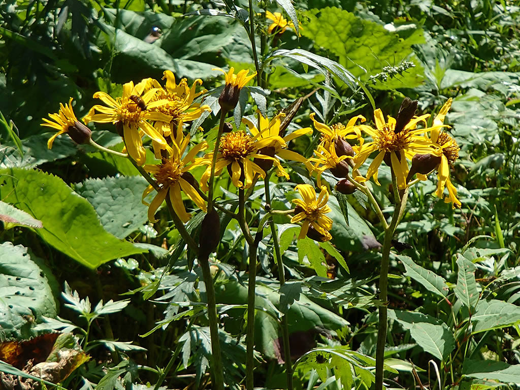 黄色くて大きなマルバダケブキは目立ちます。