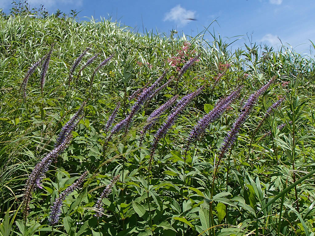 最後の写真は駐車場から少し下ったところの斜面で見つけたマルバダケブキとクガイソウの群落。