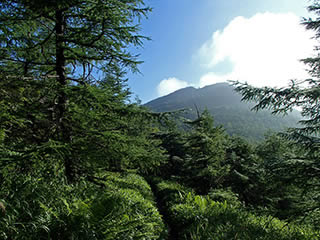 しばらく平坦な登山道が続き、まもなく進行方向に山が見えてきます。登山口からぐんぐん登るんだろうと勝手に予想していたため、違う山に向かっているのかと少し心配になり地図を確認したりGPSを確認してみたり(^^;。ルートは問題ありませんでした。
