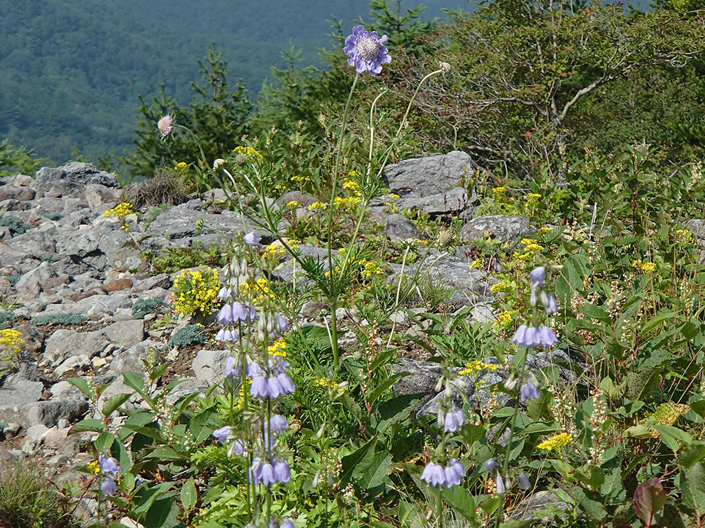 コマクサに代わってツリガネニンジン、マツムシソウなど沢山の花が咲いています。