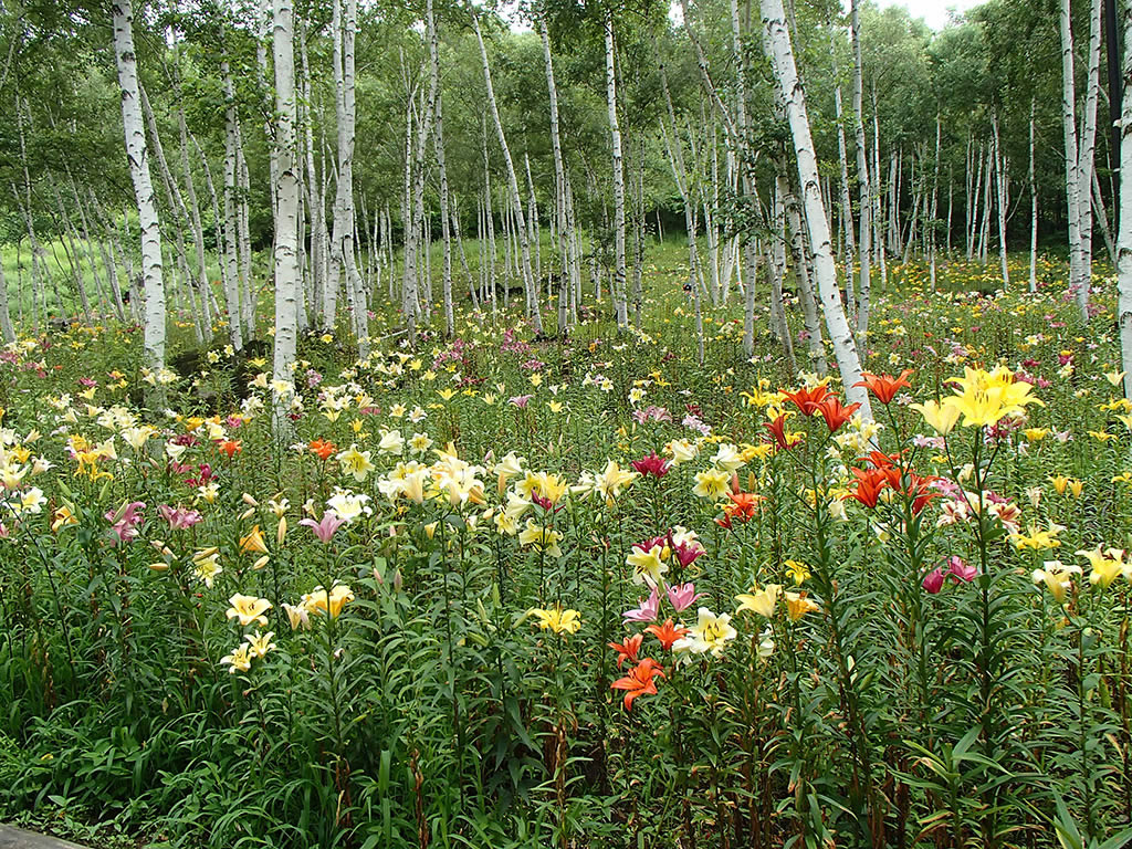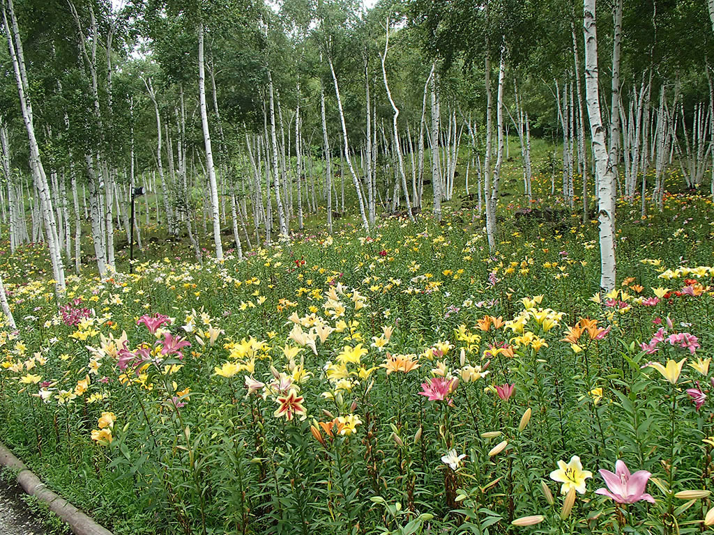 白樺ゆりエリアは斜面一面にゆりが咲いていてとてもきれいです。