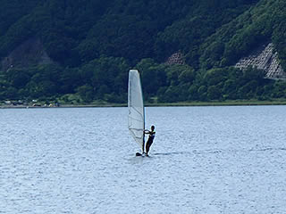 この日は私を含めウインドサーフィンは数艇出ているだけでした。ちなみに写真はいずれも私ではありません。一応動く程度の風はありますが、あまり楽しくはありません。