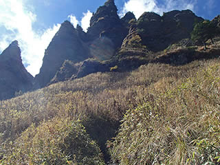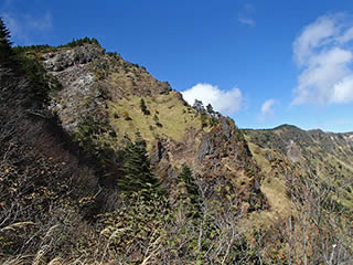 今下っている登山道を振り返ります。下りでは登ってくる多くの登山者とすれ違いました。