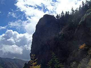 トーミの頭の巨大な岩。ほとんど垂直な壁です。