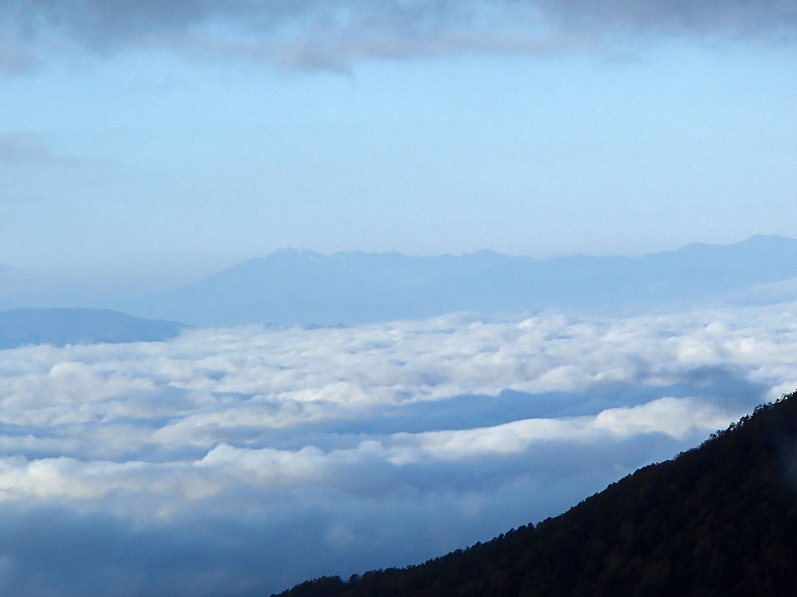 この周辺にはガスがかかっていますが、北アルプスの稜線はきれいに見えています。