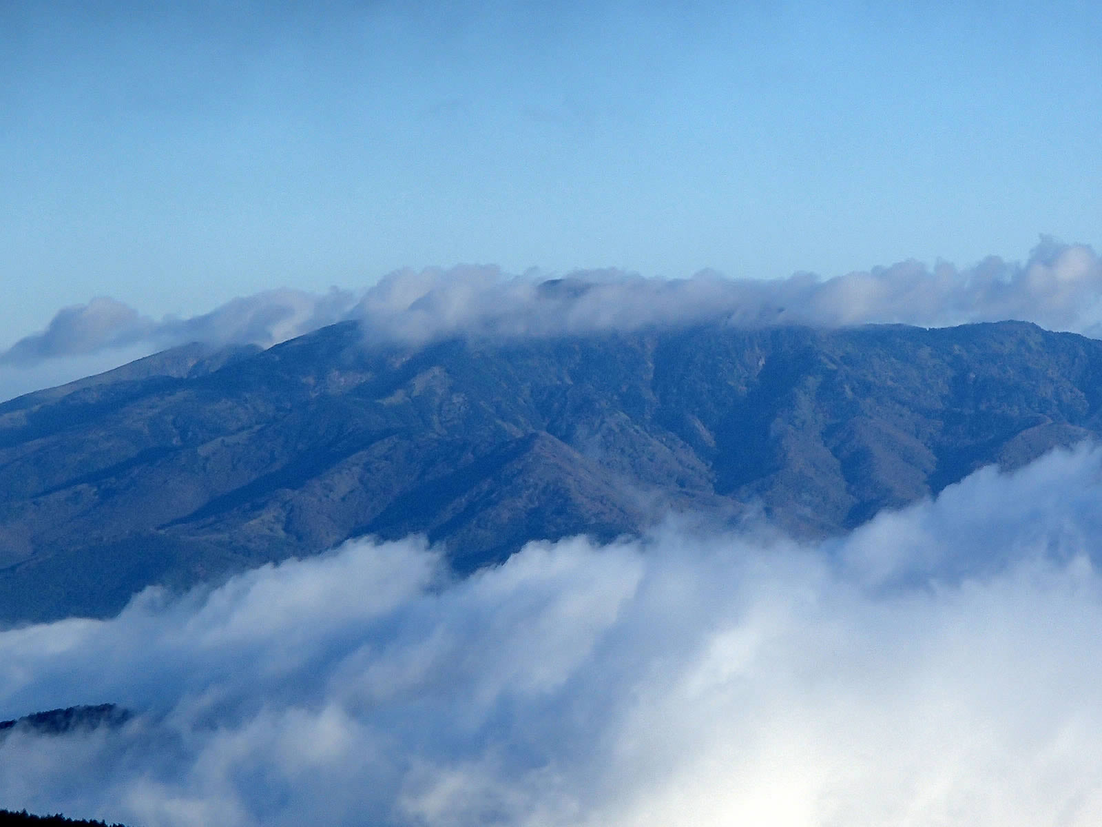 四阿山は稜線にガスがかかっていました。その向こうに妙高などのピークが雲海の上に見えていました。