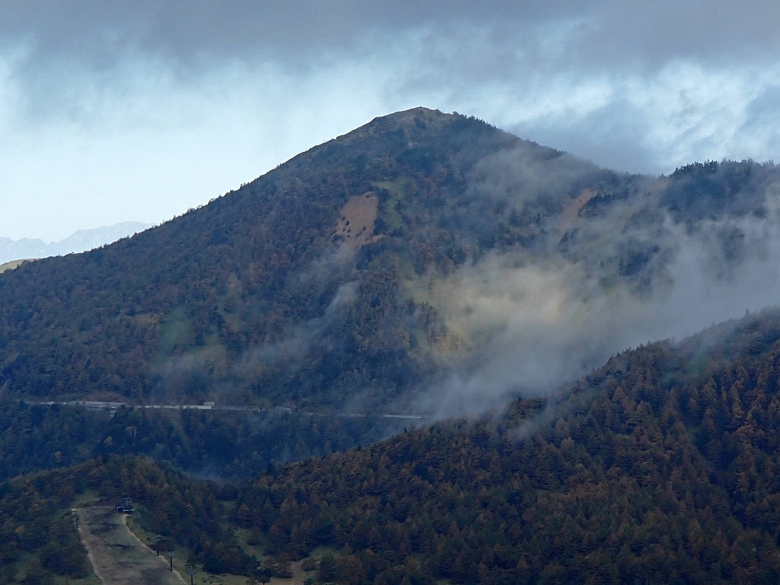 根子岳、四阿山をズーム。稜線にはこちらと同じくガスがかかっています。