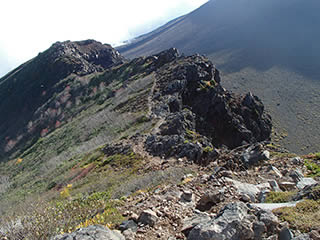 9時43分、前掛山の稜線に到着。この先、浅間山方面は立ち入り禁止です。
