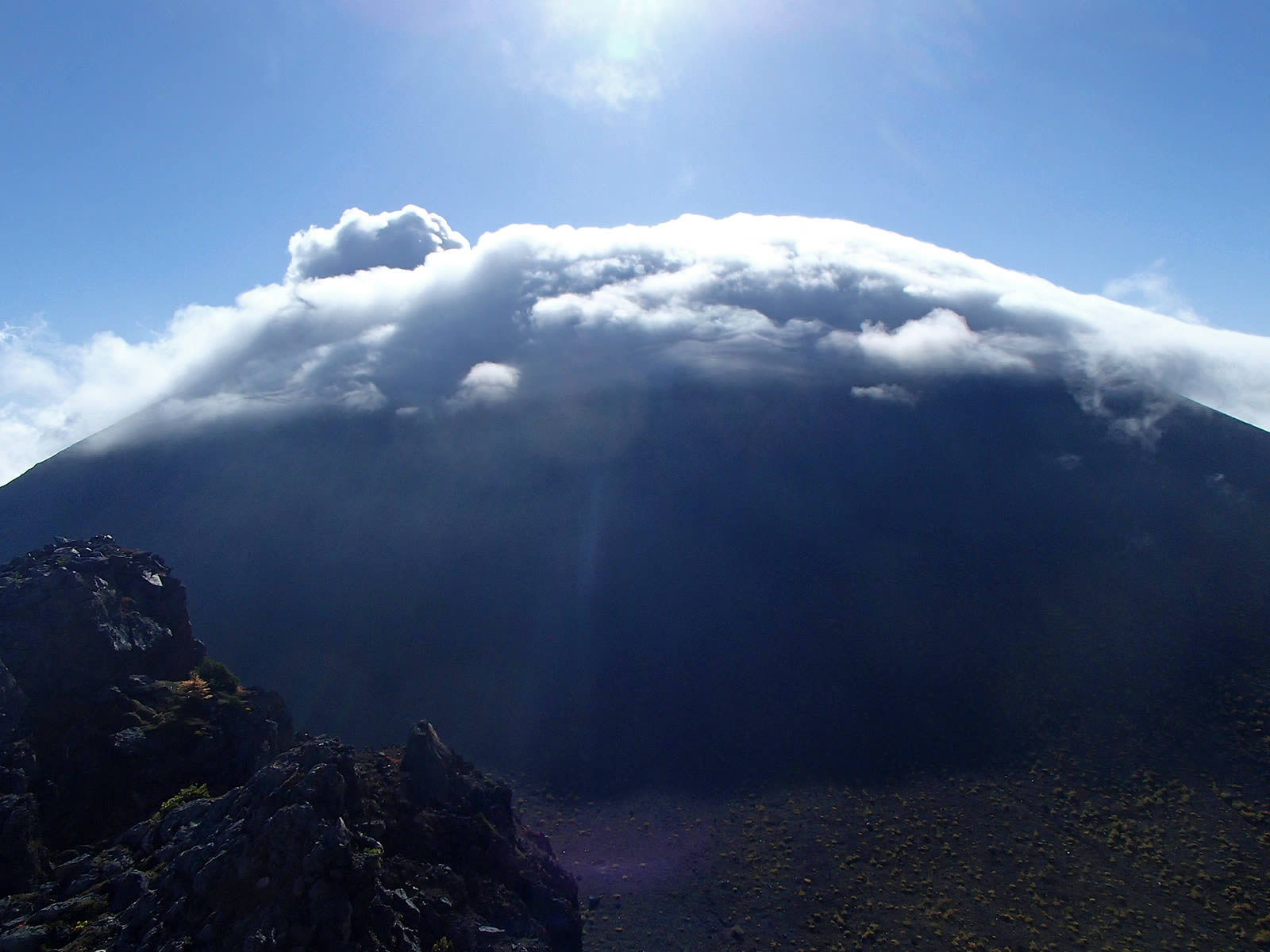 ちょうど噴火口の辺りから噴煙の様なものがもくもくと高くわき上がっていましたので、もしかして火山活動が活発化しているのかと心配になりましたが、どうやら噴火口で巻いた風がガスを吹き上げていたもののようです。