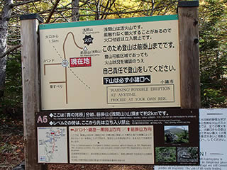 ちなみに浅間山は活火山ですので、御嶽山のこともあり念のためヘルメットをザックに付けていきました。なお浅間山の現在の噴火警戒レベルはレベル1で前掛山まで登ることが出来ます。